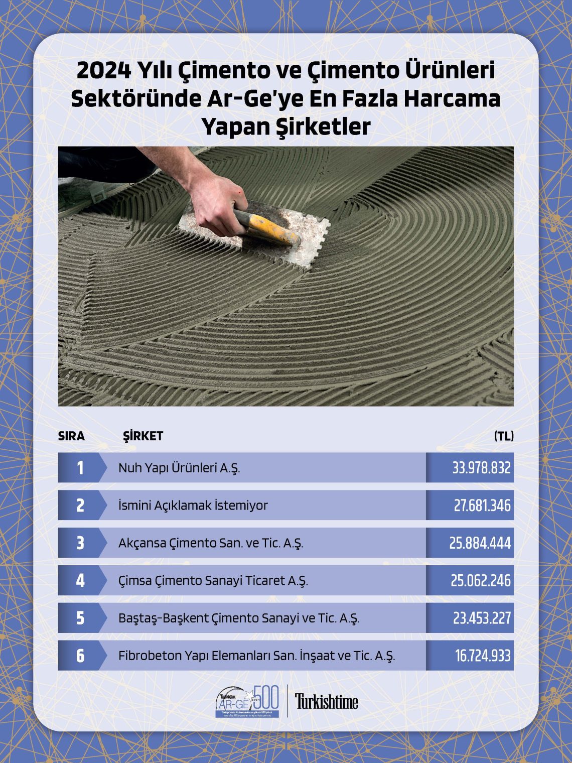 2024 Yılı Çimento ve Çimento Ürünleri Sektöründe Ar-Ge'ye En Fazla Harcama Yapan Şirketler PAYLAŞ Facebook'ta Paylaş Tweetle Linkedin'de Paylaş Turkishtime Dergi 29 Eylül 2025