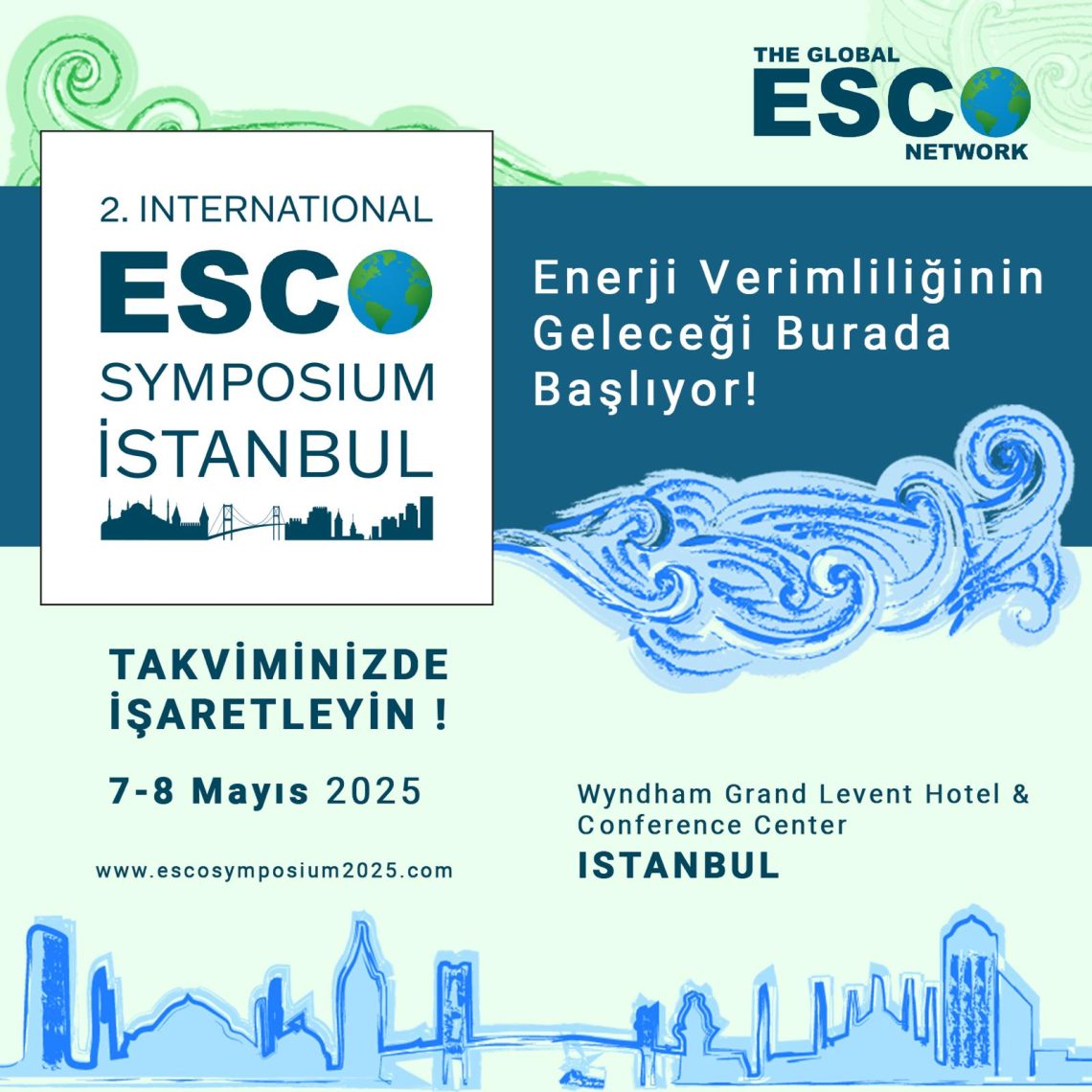 Enerji verimliliği ve sürdürülebilirlik alanında küresel ölçekte en önemli etkinliklerden biri olan 2. Uluslararası ESCO Sempozyumu, 7-8 Mayıs 2025 tarihlerinde İstanbul'da düzenlenecek. Wyndham Grand İstanbul Levent’te gerçekleşecek etkinlik, enerji verimliliği finansmanı, ESCO iş modeli ve küresel iklim hedefleri doğrultusunda yenilikçi çözümler konularında dünya çapında uzmanları bir araya getirecek.