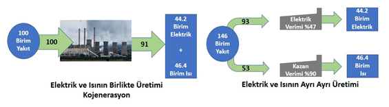 Görsel 1: Kojenerasyon ve konvansiyonel üretim karşılaştırması