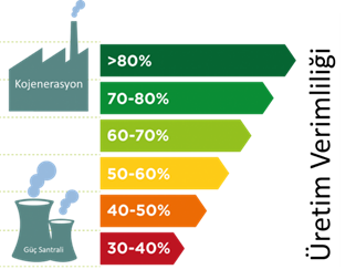 Basit çevrimde çalışan, yani sadece elektrik üreten bir türbini ya da motoru, kullandığı enerjinin %35-45 kadarını elektriğe çevirebilir. Bu sistemin kojenerasyon şeklinde kullanılması halinde sistemden dışarıya atılacak olan ısı enerjisinin büyük bir bölümü de kullanılabilir enerjiye dönüştürülerek toplam enerji girdisinin %85-95 oranında değerlendirilmesi sağlanabilir. Bu tekniğe kombine ısı güç sistemleri (Combined Heat and Power (CHP) ya da kısaca “kojenerasyon” denir.