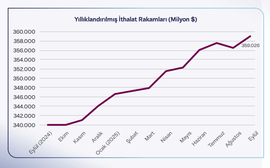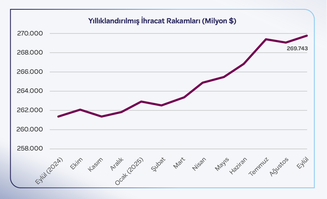 Ağustos ayında ihracat 21 milyar 795 milyon dolar, ithalat 25 milyar 963 milyon dolar düzeyinde gerçekleşmişti. 2025 yılının Ocak-Eylül dönemine bakıldığında ihracat %4,1 artışla 200 milyar 625 milyon dolar, ithalat ise %5,9 artarak 267 milyar 651 milyon dolar oldu. Bu yılın ilk yarısında dış ticaret hacmi ise %5,2 artışla 468 milyar 276 milyon dolar seviyesine çıktı.